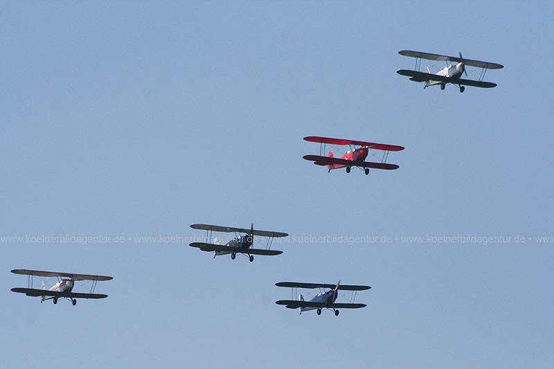 Stampe-Formation aus Nordhorn mit Stampe SV-4 Flugzeugen 2-sitziger kunstflugtauglicher Trainer als Doppeldecker mit Spornrad. Seit 1937 in Belgien gebaut. "SV" steht für die beiden Konstrukteure Jean Stampe und Maurice Vertongen.