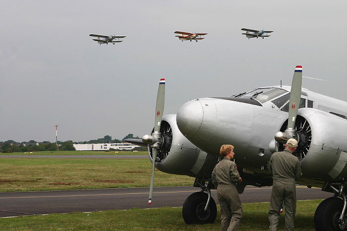 Die Beach18 wird von den drei "Annas" von Classicwings überflogen.