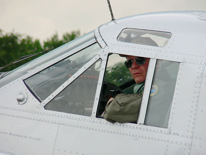 Kapitän Arie de Vries kurz nach der Landung im Cockpt "seiner" Beach18.