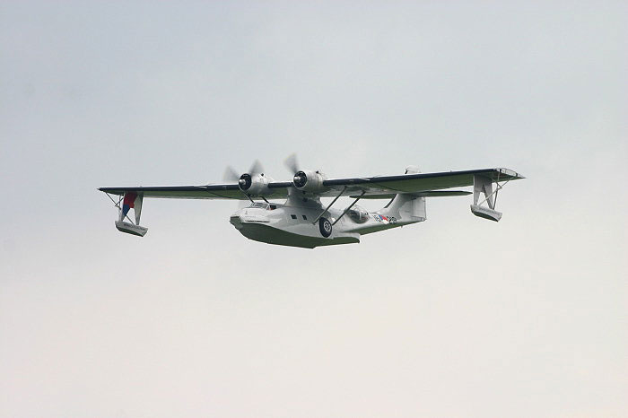 Überflug mit ausgefahrenen Schwimmern.