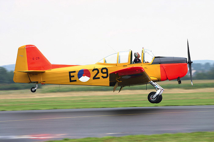Maschine mit der Kennung E-29 kurz vor der Landung.