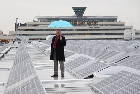![]() Zentral- und Osteuropa-Hub von FedEx Betreiber der Anlage ist die Flughafengesellschaft, die dafür drei Millionen Euro investiert hat. Es ist die bislang größte Dach-Solar-Konstruktion, die an einem deutschen Verkehrsflughafen gebaut wurde und sehr wahrscheinlich auch die größte Solar-Anlage auf einem Gebäude in NRW. ![]() Solarmodule „Wir setzen nachhaltig auf regenerative Energien. Diese hochmoderne Solaranlage ist ein Beispiel dafür, wie sich ökonomische und ökologische Interessen zusammenbringen lassen“, sagte der Vorsitzende der Flughafen-Geschäftsführung, Michael Garvens.„Wir setzen nachhaltig auf regenerative Energien. Diese hochmoderne Solaranlage ist ein Beispiel dafür, wie sich ökonomische und ökologische Interessen zusammenbringen lassen“, sagte der Vorsitzende der Flughafen-Geschäftsführung, Michael Garvens. ![]() Flughafenchef Michael Garvens „FedEx Express sieht es als seine Verpflichtung an, die Welt ebenso schnell wie verantwortungsvoll zu verbinden. Das Umschlagzentrum in Köln wird dazu einen wichtigen Beitrag leisten“, sagte Bernhard Schloemer, Managing Director Operations, Zentral- und Osteuropa bei FedEx Express. Jedes der 1,66 Quadratmeter großen Solar-Module erzeugt im Schnitt eine Leistung von 230 Watt. Im Jahr werden so über 800 000 Kilowattstunden sauberer Strom aus Sonnenenergie gewonnen und damit rund 423 Tonnen C02 eingespart. Mit dieser Menge könnten mehr als 160 Drei-Personen-Haushalte pro Jahr versorgt werden. Binnen 20 Jahren erzeugt die Anlage somit emissionsfrei soviel Strom, wie 3 200 Drei-Personen-Haushalte pro Jahr verbrauchen. Und bereits nach 36 Monaten kompensiert eine Photovoltaik-Anlage dieser Größe die bei der Herstellung verursachten CO2-Emissionen. Gebaut wurde die Dachanlage in rekordverdächtigen acht Wochen von der Firma Wierig Solar aus Siegburg. Außerdem hat sich der Köln Bonn Airport mit Solarmodulen der Firma Solarwatt aus Dres-den und Wechselrichtern von SMA aus Niestetal ganz bewusst für deutsche Qualitätsfabrikate entschieden. Mit den Solar-Anlagen auf dem FedEx-Gebäude und dem Cologne Bonn Cargo Center, das im März dieses Jahres in Betrieb ging und ebenfalls über Photovoltaik auf dem Dach verfügt, werden nunmehr am Flughafen Köln/Bonn jährlich über 1 Million Kilowattstunden regenerativer Strom erzeugt. FedEx Umschlagzentrum Seit Oktober 2008 bauen FedEx Express, Tochtergesellschaft der FedEx Corp. (NYSE: FDX), und der Köln Bonn Airport in Köln das neue Umschlagzentrum des Express-Dienstleisters. Auf einer Fläche von rund 50 000 Quadratmetern entsteht ein modernes Fracht- und Sortierzentrum, für das FedEx und der Flughafen gemeinsam etwa 140 Millionen Euro investieren. Der Rohbau ist bereits fertig, derzeit läuft der Innenausbau des Gebäudes. Die Arbeiten liegen voll im Zeitplan. Mitte nächsten Jahres soll das Hub eröffnet werden. An dem Umschlagzentrum wird FedEx voraussichtlich rund 450 Mitarbeiter beschäftigen. Fotos: Franz Gerd Frank für die koelnerbildagentur Text: Köln Bonn Airport |