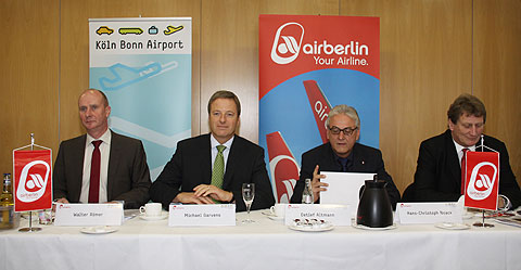 Deutschlands zweitgrößte Fluggesellschaft Air Berlin erweitert ihr Flugangebot ab dem Köln Bonn Airport und stärkt damit ihre Präsenz in der Rheinmetropole. Durch die Übernahme der Städtestrecken von TUIfly sind seit dem 25. Oktober 2009 weitere 21 innerdeutsche und europäische Ziele hinzugekommen, auf denen Air Berlin teilweise die Frequenzen erhöht hat.
